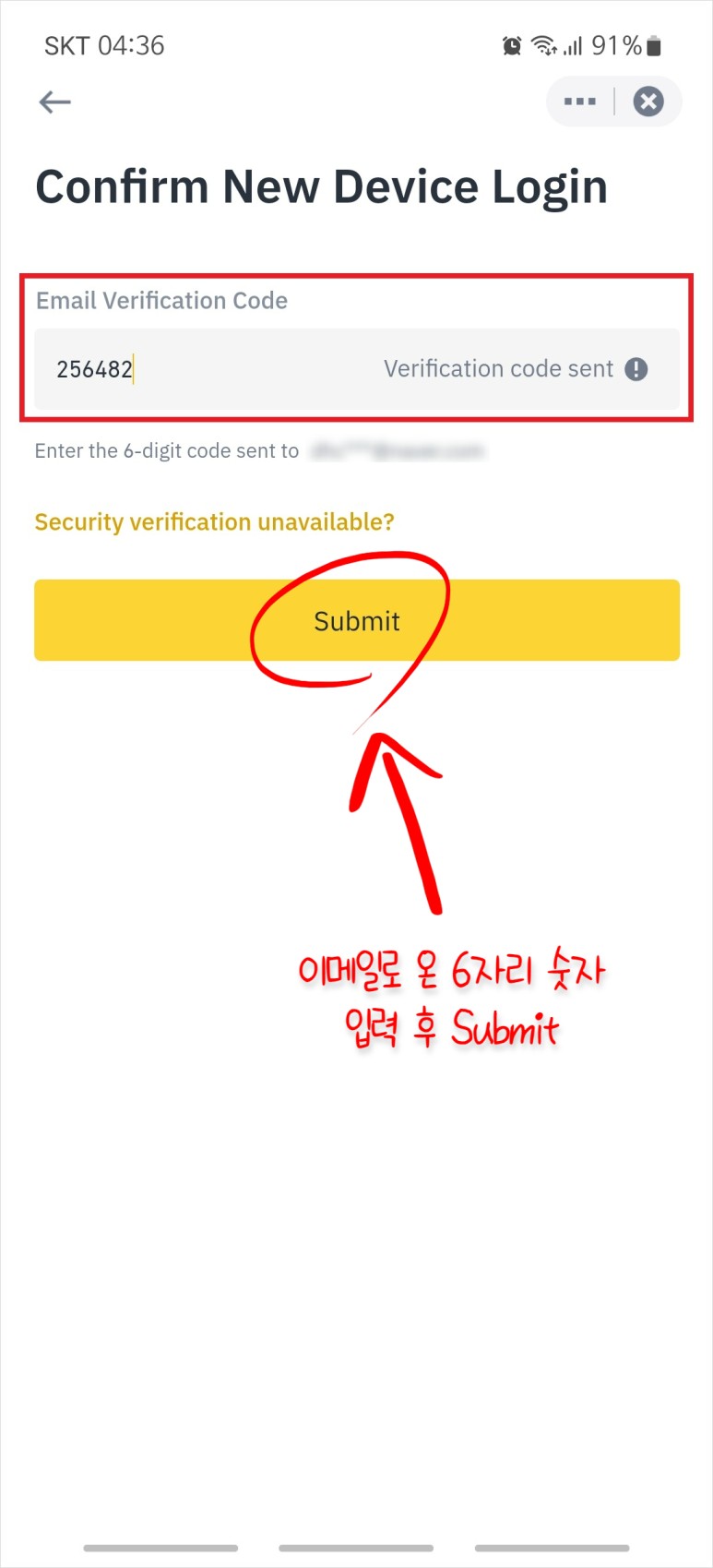 화면이 바뀌고 나면 방금 입력한 이메일 주소로 6자리의 숫자가 보내진다.