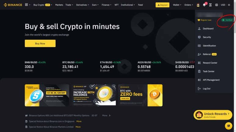 이것으로 바이낸스 거래소의 회원가입 절차가 완료되었다.