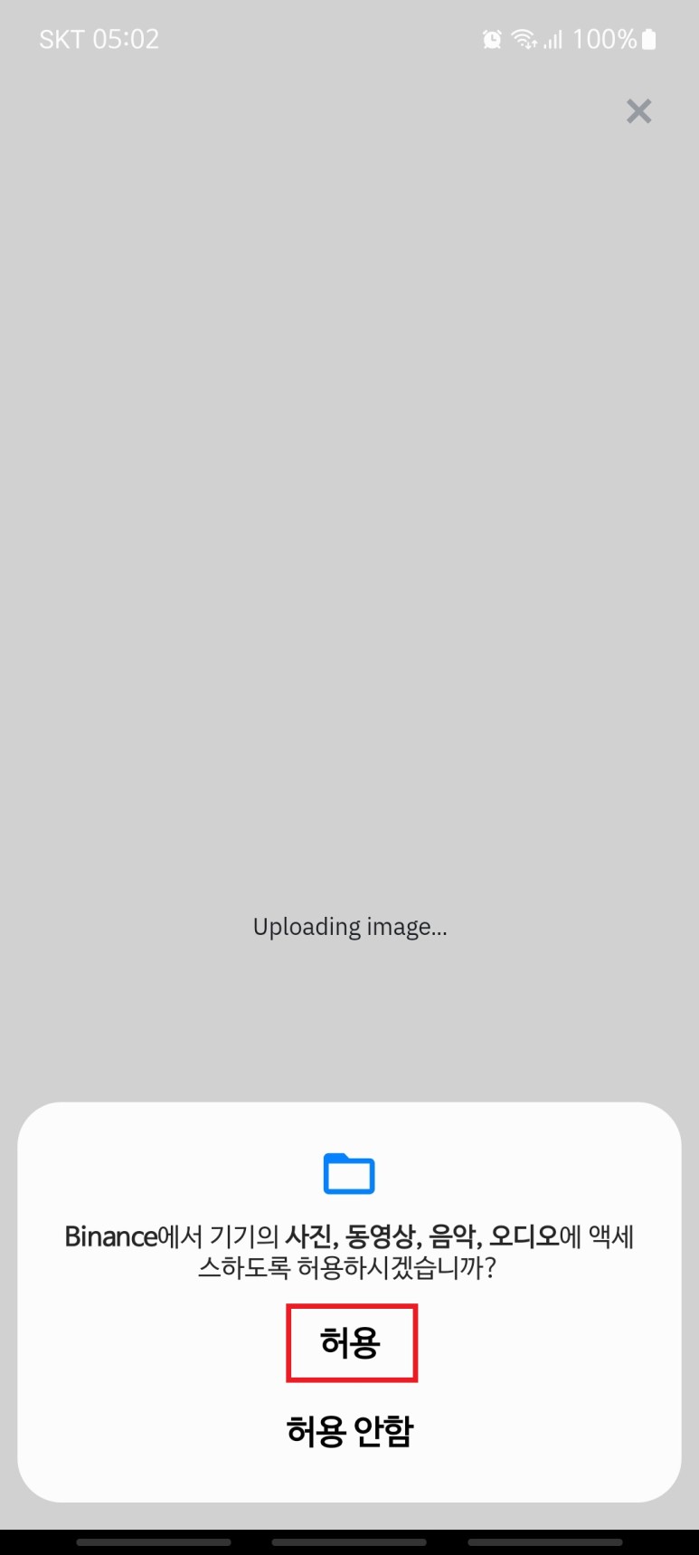 그리고 바이낸스 앱이 신분증 사진에 액세스할 수 있도록 허용을 클릭해 주자.